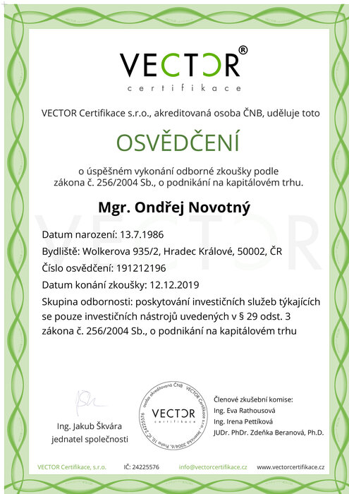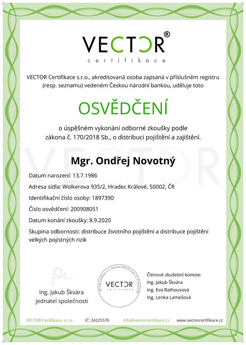Ondřeje Novotného jsem před lety oslovila s tím, aby mi pomohl s životními pojistkami pro mě i mou rodinu. Spolupráce s ním byla natolik profesionální, rychlá, že jsem se na něj neváhala obrátit později s dalšími pojistkami (domácnost, auto, atd.) a následně i s hypotékou. Nyní nám Ondřej spravuje komplexně vše a já ho neváhám doporučovat dál. Úroveň poskytovaného servisu, komplexnost služeb, flexibilita, jeho přehled napříč spektrem a osobní přístup je velmi nadstandardní.