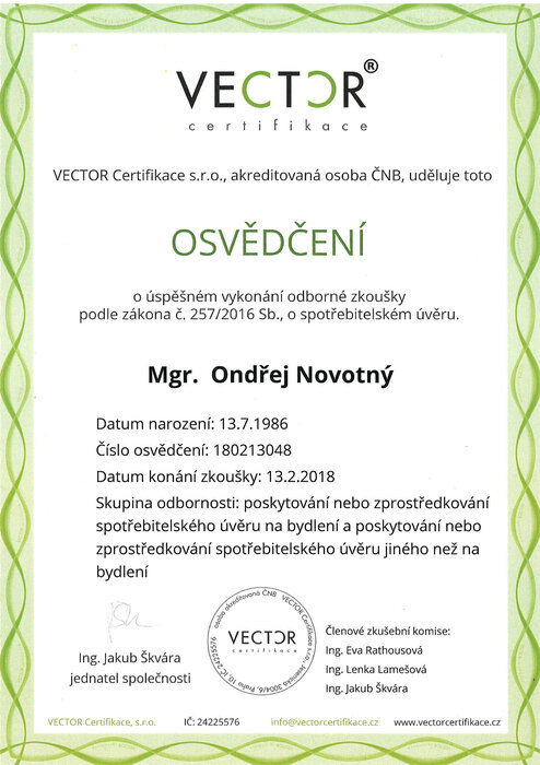 Ondřeje Novotného jsem před lety oslovila s tím, aby mi pomohl s životními pojistkami pro mě i mou rodinu. Spolupráce s ním byla natolik profesionální, rychlá, že jsem se na něj neváhala obrátit později s dalšími pojistkami (domácnost, auto, atd.) a následně i s hypotékou. Nyní nám Ondřej spravuje komplexně vše a já ho neváhám doporučovat dál. Úroveň poskytovaného servisu, komplexnost služeb, flexibilita, jeho přehled napříč spektrem a osobní přístup je velmi nadstandardní.